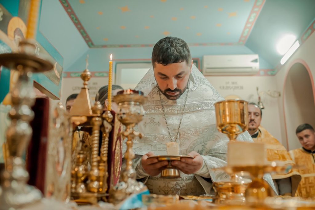 Tot în cadrul Sfintei Liturghii, elevii și cadrele didactice au avut bucuria de a asista la hirotonia întru preot a diaconului Eugen Pleșca, profesor din cadrul ATOM.