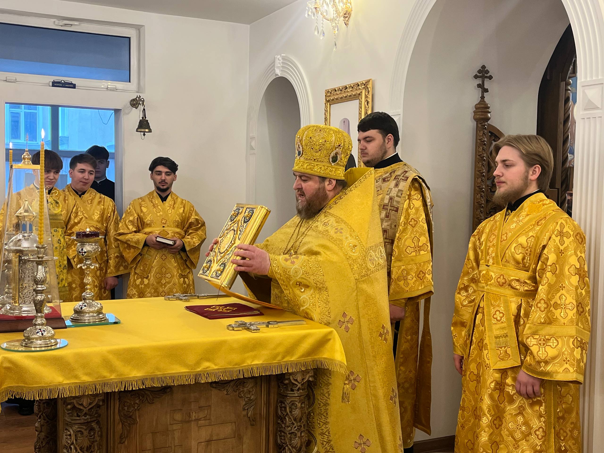 Cu acest prilej, a fost întâmpinat Preasfințitul Filaret, Episcop de Căpriana și vicar al Mitropoliei Moldovei, de către Părintele Prorector al Academiei de Teologie, Arhimandritul Nectarie Gherman, înconjurat de un sobor de preoți profesori, alături de studenți și elevi ai instituțiilor teologice. Atmosfera de solemnitate și comuniune eclesială a evidențiat unitatea dintre ierarhie, corpul profesoral și tinerii aflați în formare.