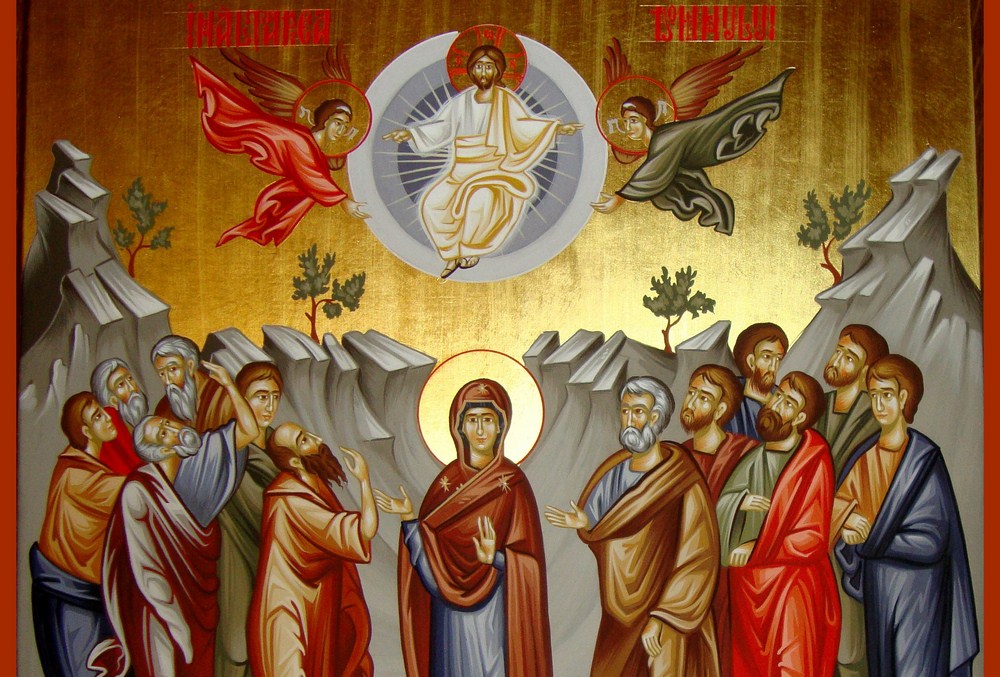 Aşadar, dacă sus, în cer, îngerii prăznuiesc, jos pe pământ ucenicii încearcă alte sentimente. Se bucură şi ei, dar simt şi întristare. Trei ani întregi L-au avut alături pe Hristos. L-au iubit mai mult decât pe tatăl lor. Pentru El au părăsit slujbe, case, copii, femei, pe bătrânii lor părinţi şi L-au urmat pe El pretutindeni. Şi acum? Pleacă, se înalţă către cele de sus. Câţi dintre noi ne-am aflat lângă tată şi lângă mamă când şi-au dat sufletul şi ne-au lăsat, simţim ce înseamnă a fi orfan. Şi pentru ucenici, de acum, Tatăl lor a plecat. De aceea, undeva în tropare, Biserica psalmodiază: „Stăpâne, nu ne lăsa pe noi orfani…”; „Dătătorule-de-viaţă, Hristoase, nu ne lăsa orfani”.